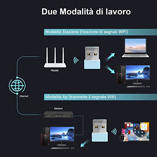 NEWFAST 150 Mbps USB WiFi Adattatore Nano 2.4GHz Adattatore USB di Rete USB2.0 WiFi Ricevitore per Desktop Laptop Mini Dongle WiFi Supporto Windows XP/7/8/8.1/10, Windows 11(64 bit), Nessuna unità CD