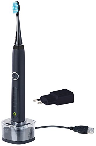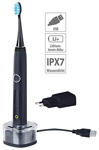 Spazzolino a ultrasuoni con 1 testina di ricambio, stazione di ricarica a induzione, cavo di ricarica USB, alimentatore di rete USB e istruzioni in lingua tedesca - abituate delicatamente ed è delicato sui denti