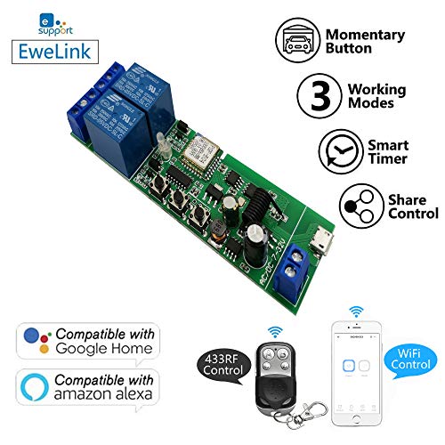 Newgoal Ewelink App Telecomando WiFi 433 MHz RF Wireless Switch Relè, autobloccante, modalità di interblocco, utilizzato per accedere e controllare porte smart garage, compatibile con Alexa Goolge