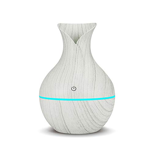 NEWKBO Umidificatore Ad Ultrasuoni Diffusore Di Oli Essenziali Aromi 130ml USB Con Grano di Legno Diffusore Elettrico Aroma Luci LED Per La Casa(Legno Chiaro)