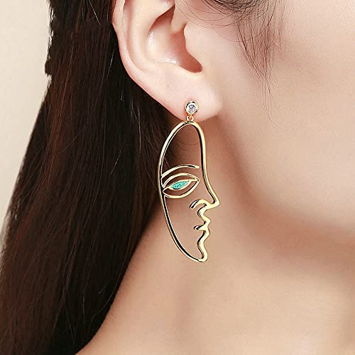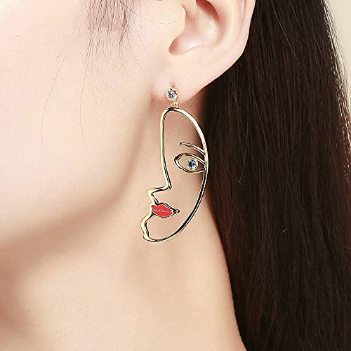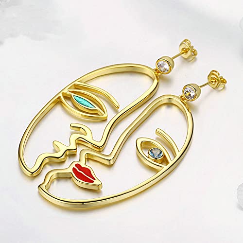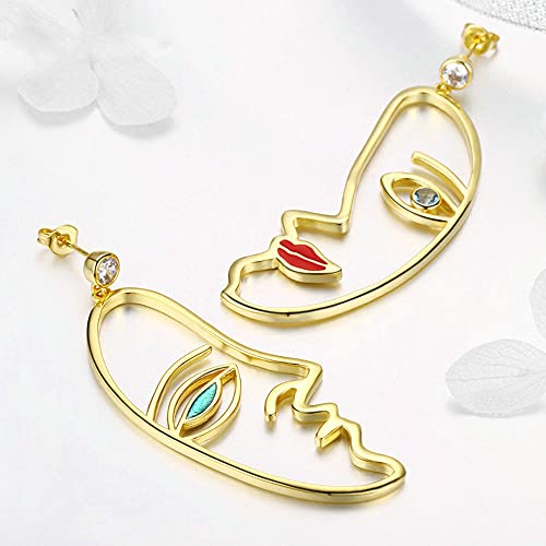 NEWL Trendy Colore Argento Iperbole Picasso Viso Orecchini di Goccia per Le Donne Chiaro CZ Nozze Fidanzamento, Metallo Argento Zirconia cubica, Zirconia cubica
