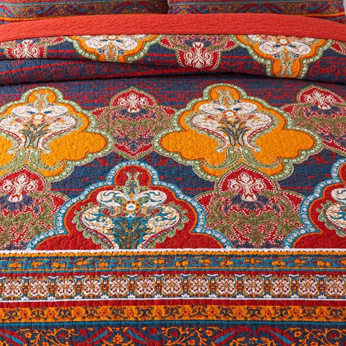 NEWLAKE Copriletto in cotone Copriletto trapuntato in formato King Size 3 pezzi set copriletto reversibile morbido con 2 federa (Motivo Boho Floreale Europeo, 250 * 270cm)