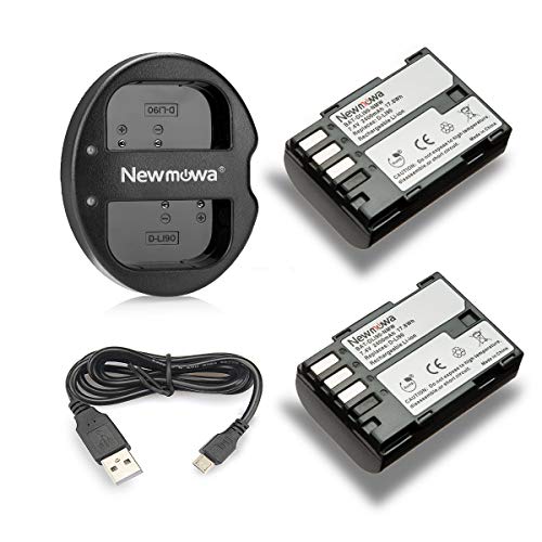 Newmowa D-LI90 Batteria (confezione da 2) e Doppio Caricatore USB per Pentax D-LI90 e Pentax 645D, 645Z, K-01, k-1,K-3, K-5, K-5 II, K-5 IIs, K-7