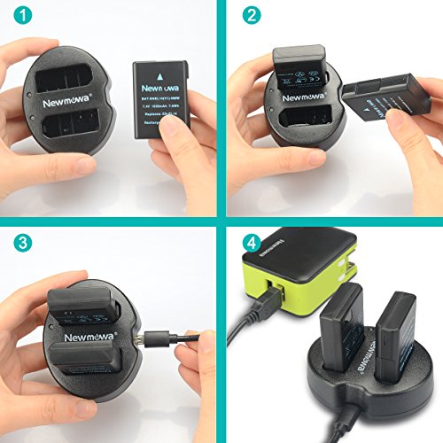 Newmowa EN-EL14 Batteria (confezione da 2) e Doppio Caricatore Rapido per Nikon EN-EL14, EN-EL14a and Nikon P7000, P7100, P7700, P7800, D3100, D3200, D3300, D3400, D3500, D5100, D5200, D5300, D5500