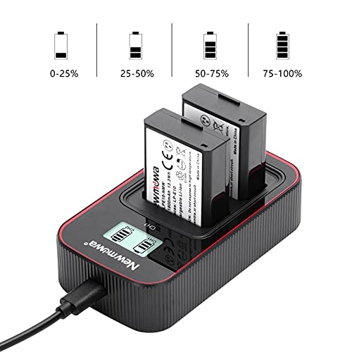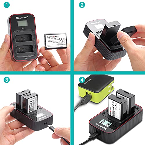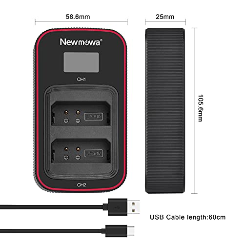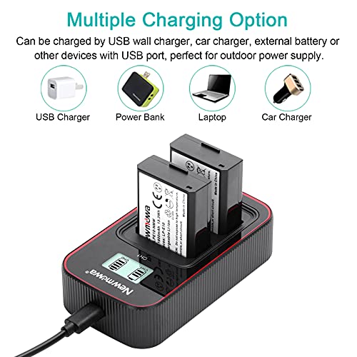 Newmowa LP-E10 Batteria di ricambio (confezione da 2) e display LCD intelligente Caricatore doppio USB per Canon LP-E10 e Canon EOS Rebel T3, T5, T6, T7, 1100D, 1200D, 2000D, 4000D, Kiss X50, Kiss X70
