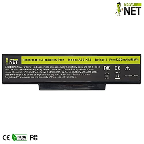NewNet - Batteria A32-K72 Compatibile con Notebook ASUS A72 A72D A72DR A72F A72J A72JK A72JR A73 A73BR A73BY A73E A73SD A73SJ A73SM A73SV A73TA [5200mAh]
