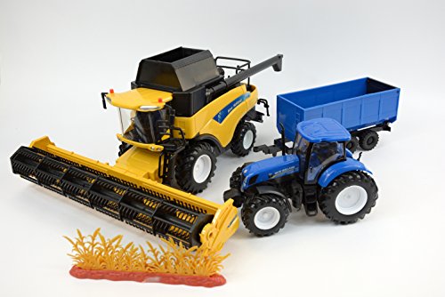 NewRay 05763 - Playset Mietitrebbia New Holland Cr9090 e Trattore New Holland T7000 con Accessori, Scala 1:32
