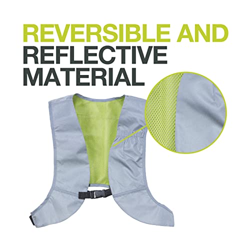 NEWRBAN | Pettorina Catarifrangente Reversibile - Leggera e Sicura - Dotata di una Comoda e Capiente Tasca Portacellulare - Taglia Unica - Colore Grigio