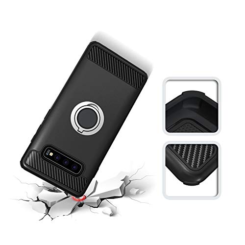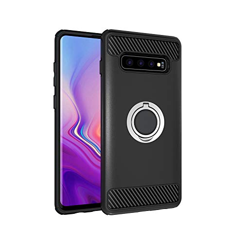 Newseego Compatibile con custodia Samsung Galaxy S10 Plus S10+, Armor Dual Layer 2 in 1 con Extreme Heavy Duty Protezione e cavalletto titolare porta dito Montare il supporto magnetico per auto - Nero