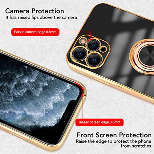 Newseego Compatibile con iPhone 11 PRO Case, Custodia Morbida in Silicone Protettiva con Tutto Il Corpo Cover per iPhone 11 PRO Anello Magnetico del cavalletto Funzione di 360°per iPhone 11 PRO-Nero