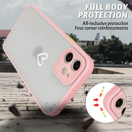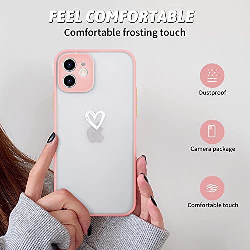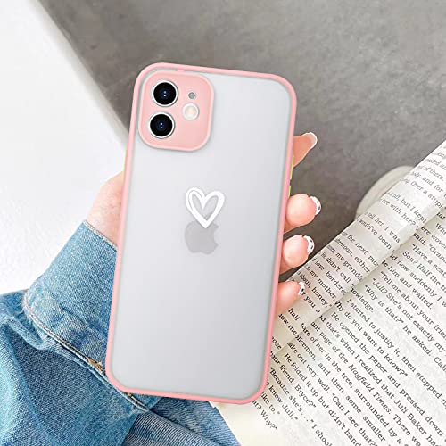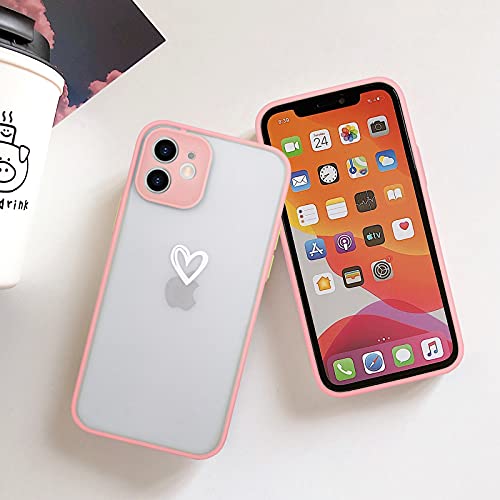Newseego Compatibile con iPhone 12 Frosted Protettiva Case, Simpatico Disegno del Cuore Traslucida Custodia per iPhone 12 [Posteriore in Rigida PC + Angoli in TPU] Antiurto Cover per iPhone 12-Rosa