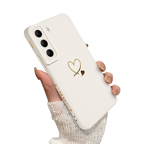 Newseego Compatibile con Samsung Galaxy S22 Cover, Cute Gold Love Heart Pattern Donne Ragazze Morbido Silicone Liquido Protezione Fotocamera Cornice Laterale Protettiva per Samsung Galaxy S22-Bianco