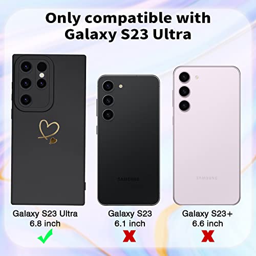 Newseego Compatibile con Samsung Galaxy S23 Ultra Cover, Cute Gold Love Heart Pattern Donne Ragazze Morbido Silicone Liquido Protezione Fotocamera Cornice Laterale per Samsung Galaxy S23 Ultra-Nero