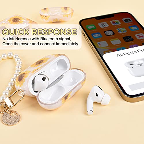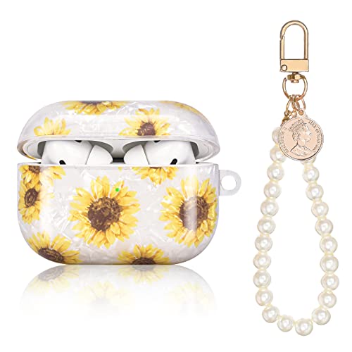 【Aspetto carino】 Il simpatico girasole luminoso con la stampa a conchiglia scintillante rende questa custodia per auricolari più elegante e unica. Elegante catena di perle come decorazione per rendere la tua custodia Airpods Pro più accattivante, particolarmente adatta a donne e ragazze.