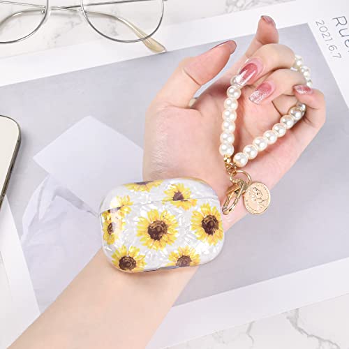 Newseego Custodia Compatibile con Airpods PRO, Cute Girasole Custodia per Airpods TPU Flessibile con Catena di Perle Custodia Protettiva Completa Portatile Accessori Airpods PRO Custodia di Ricarica