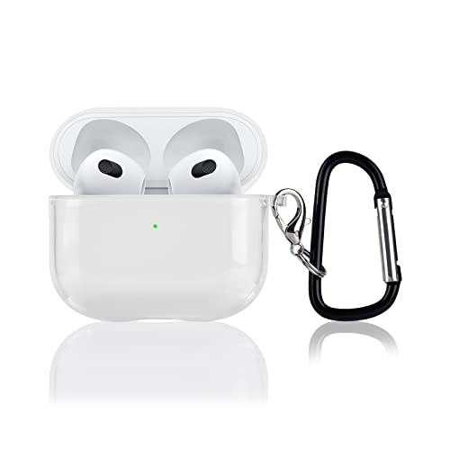 Newseego Custodia compatibile con AirPods 3, custodia protettiva in TPU morbida semplice con moschettone, custodia protettiva antiurto portatile anti-giallo per custodia di ricarica AirPods