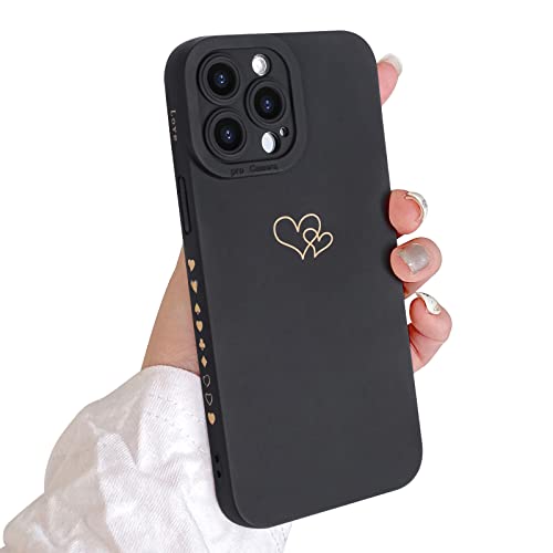 Newseego Custodia Compatibile con iPhone 13 PRO Max, Cute Love Heart Pattern Morbido Silicone Liquido Custodia Protettiva Flessibile TPU all-Inclusive Lente Antiurto Bumper Case, Black
