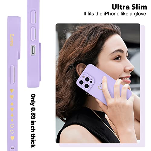 Newseego Custodia Compatibile con iPhone 14 PRO Max Simpatico Dorato Motivo Cuore d'Amore Donne Ragazze Silicone Liquido Morbido Cornice Laterale Cuore Custodia Protettiva iPhone 14 PRO Max-Viola