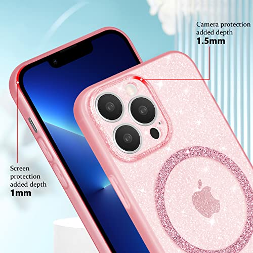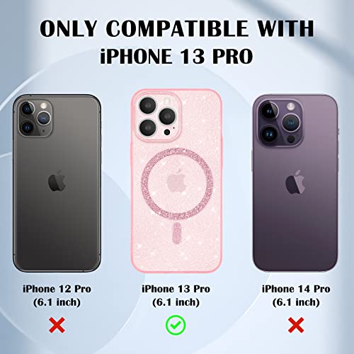 Newseego Custodia per iPhone 13 PRO Glitter Trasparente Ragazze Donne[Compatibile con MagSafe], Cover Magnetica Telefono Scintillante Antiurto Protezione Fotocamera Cover iPhone 13 PRO-Rosa
