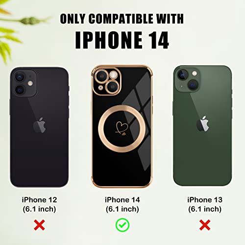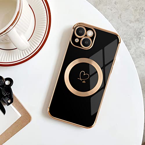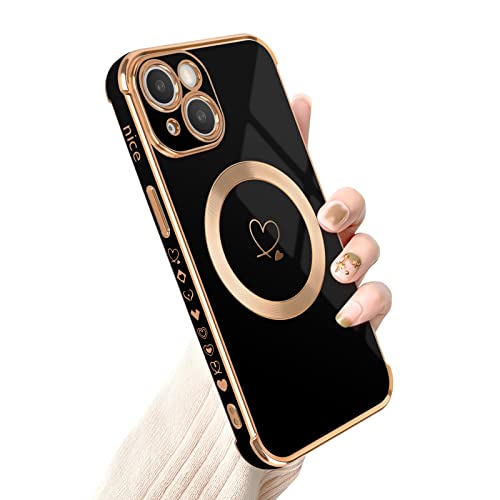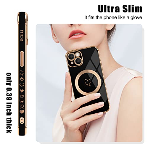 Newseego Magnetica Custodia per iPhone 14 [Compatibile con MagSafe], Ragazza Donna Simpatico Motivo Cuore d'Amore Placcatura Bordo Morbida Silicone Antiurto Protettiva Cover per iPhone 14 -Nero