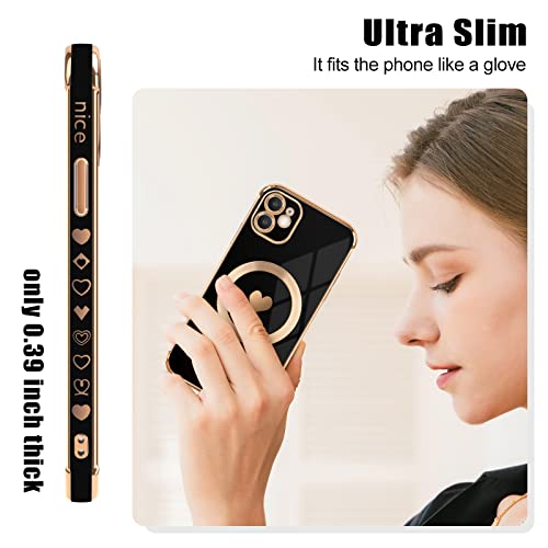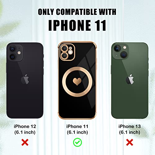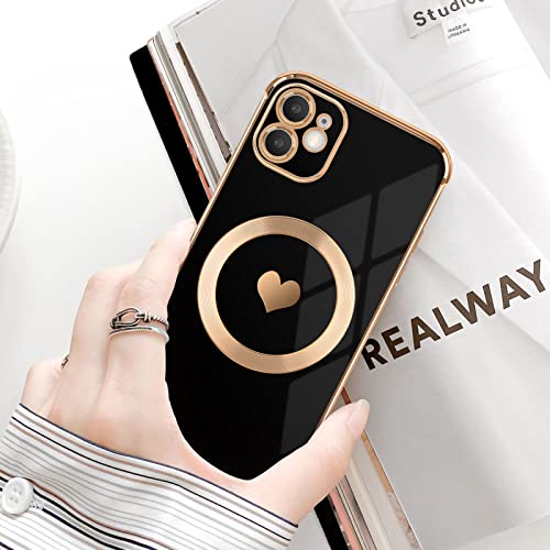 Newseego Magnetica Custodia per iPhone 11 [Compatibile con MagSafe], Ragazza Donna Simpatico Motivo Cuore d'Amore Placcatura Bordo Morbida Silicone Antiurto Protettiva Cover per iPhone 11 -Nero