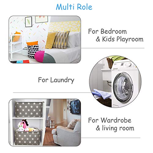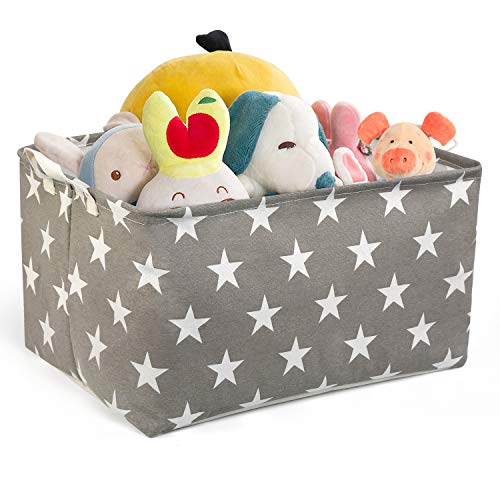 NEWSTYLE Cesto Contenitore per Giocattoli Organizer Grandi Piazza Raggruppabili Stoccaggio Paniere per Organizzazione Lavanderia, Giocattoli Bambini,Libri (Grigio Star)