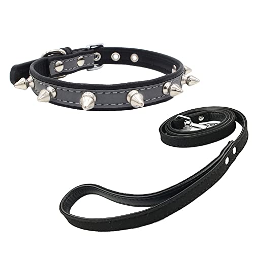 Newtensina Borchie Collare per Cani e Guinzaglio Set Riflessivo Collare di Cucciolo con Morbido Guinzaglio per Cani di Piccola Taglia
