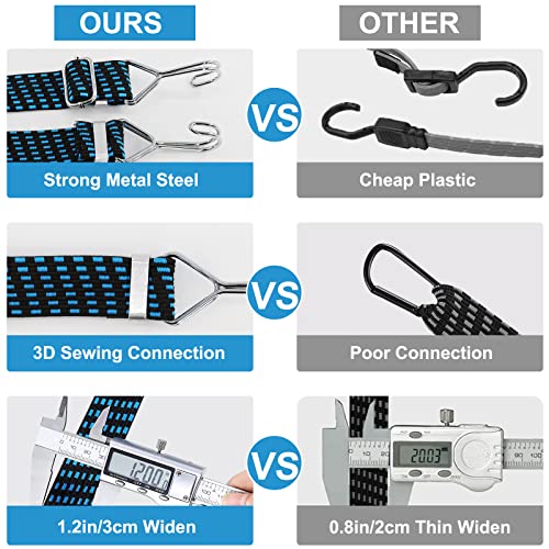 Newthinking Cordini elastici regolabili con ganci, confezione da 4 resistenti elastici per bagagli, spostamento di auto, campeggio, 3 m, colore: blu