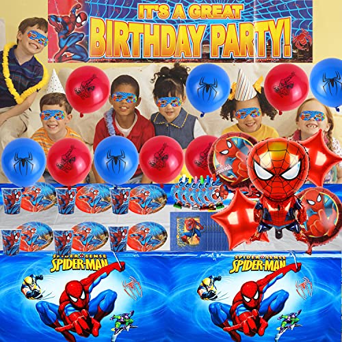 Newtic 51PCS Stoviglie per Feste Compleanno, Decorazioni Compleanno Spiders, Stoviglie per Feste a Spiders, Palloncini Compleanno Spiders, Tazze, tovaglioli, Piatti, tovaglie, Palloncini