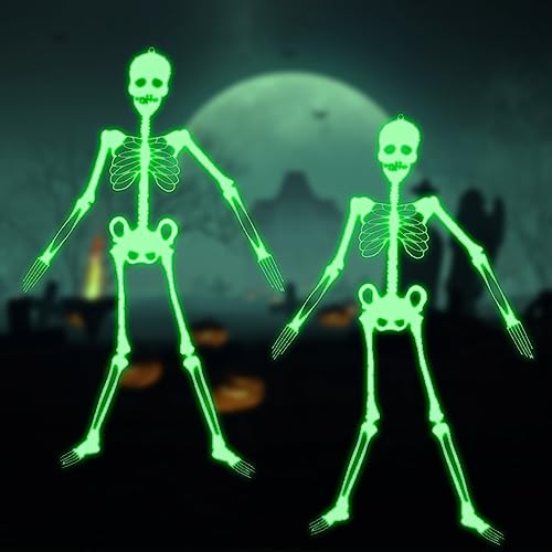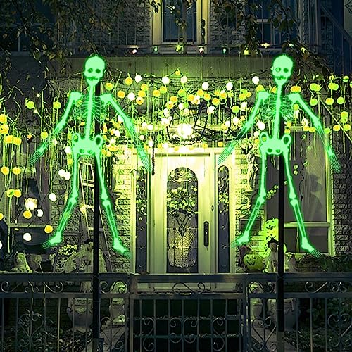La migliore decorazione per Halloween: decorazione scheletro di Halloween che si illumina al buio, perfetta da appendere a finestre, pareti, porte di casa e alberi. Perfetto per Halloween, case infestate, feste di vampiro, feste di strega, feste horror e carnevale.