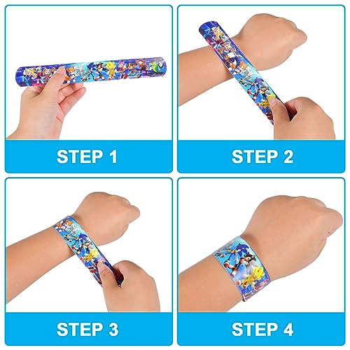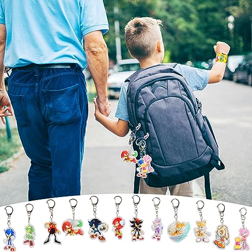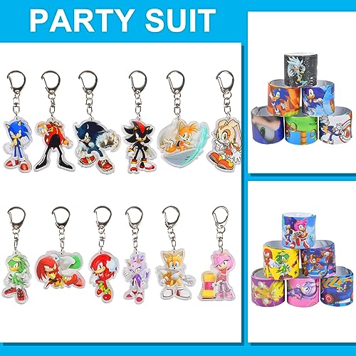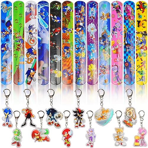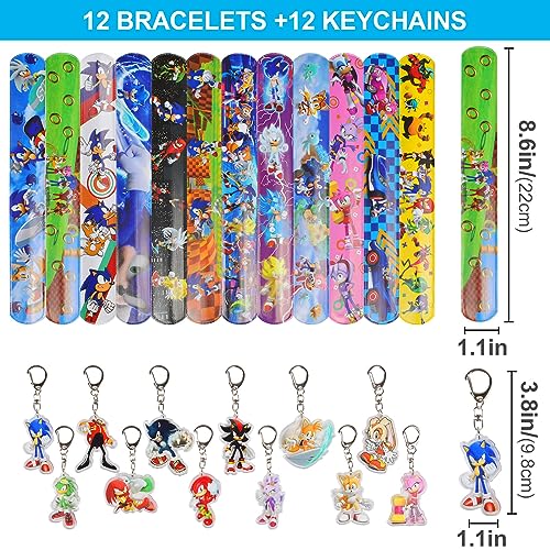 Newtic Sonic Regalo di Compleanno per Bambini, 12PCS Braccialetto a Schiaffo per Bambini +12PCS Portachiavi, Accessori per Feste di Compleanno, Braccialetto a Scatto per Bambini Regali di Partito