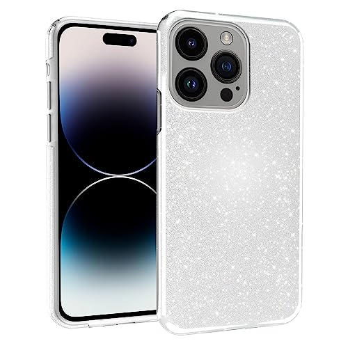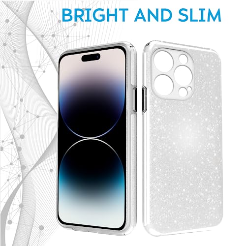 N NEWTOP 3in1 Cover Compatibile Apple iPhone 14 Pro Max, Custodia Case GLITTER Brillantini Paper Interno Bling TPU + PC Flessibile Morbida Case Posteriore Lucida Protezione Fotocamera (Silver)