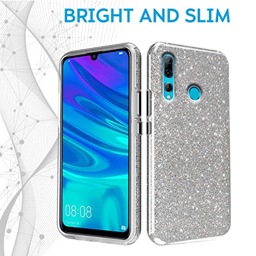 N NEWTOP 3in1 Cover Compatibile con Huawei P Smart Plus 2019, Custodia Case con GLITTER Brillantini Paper Interno Bling TPU + PC Flessibile Morbida Case Posteriore Lucida Glitterata (Nero)