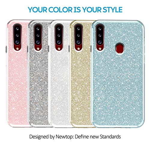 N NEWTOP 3in1 Cover Compatibile con Samsung Galaxy A20S, Custodia Case con GLITTER Brillantini Paper Interno Bling TPU + PC Flessibile Morbida Case Posteriore Lucida Glitterata (Argento)