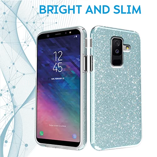 N NEWTOP 3in1 Cover Compatibile con Samsung Galaxy A6 Plus 2018, Custodia Case con GLITTER Brillantini Paper Interno Bling TPU + PC Flessibile Morbida Case Posteriore Lucida Glitterata (Azzurro)