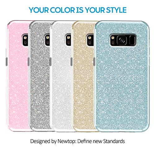 N NEWTOP 3in1 Cover Compatibile con Samsung Galaxy S8 Plus, Custodia Case con GLITTER Brillantini Paper Interno Bling TPU + PC Flessibile Morbida Case Posteriore Lucida Glitterata (Azzurro)