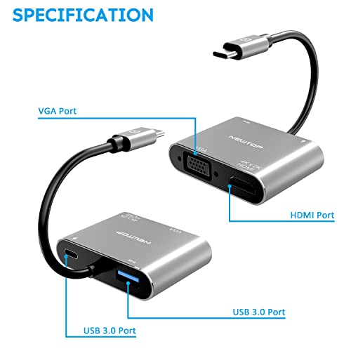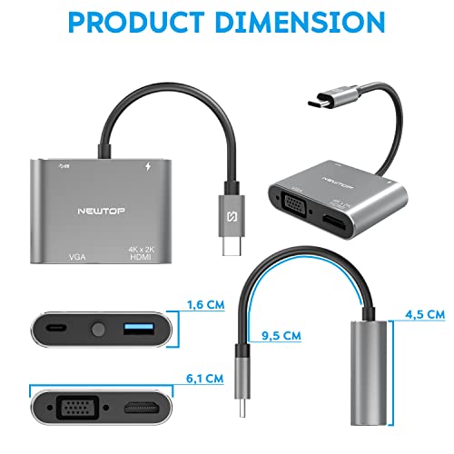 N NEWTOP Adattatore 4in1 HUB AD29 da Type-C Maschio a Femmina USB C HDMI 4K HD 2K VGA USB 3.0 Cavo Carica PD OTG Convertitore Video Audio Dati per Notebook Smartphone Console Laptop