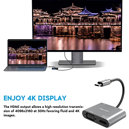 【 Specifiche Tecniche】L'uscita video HDMI è 2K e 4K compatibile. Trasferisce audio e video. In VGA ovviamente solo video. L'hub Type-C supporta il trasferimento dati fino a 5 Gb/s. Offre un accesso rapido a qualsiasi chiavetta, smartphone, tastiera, mouse etc.. con la porta USB 3.0 High Speed. Compatto e leggero!