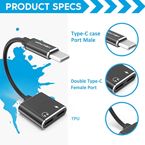 N NEWTOP Cavo 2in1 Adattatore AD07 Sdoppiatore Type-C Porta Doppia Tipo C Dual Splitter e Ascolto Musica Audio OUT Cuffie Audio e Carica Universale Compatibile per Cellulari Smartphone (Nero)
