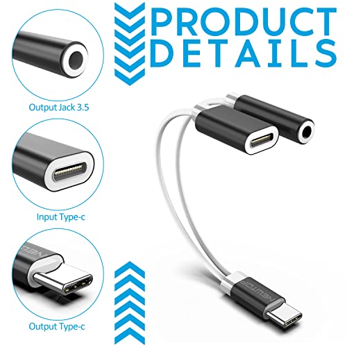 N NEWTOP Cavo Adattatore AD12 Type-C 2in1 Porta Jack 3.5mm Tipo C Dual Splitter Carica e Ascolto Musica audio OUT Cuffie Ricarica Solo Compatibile per Cellulari Huawei Smartphone