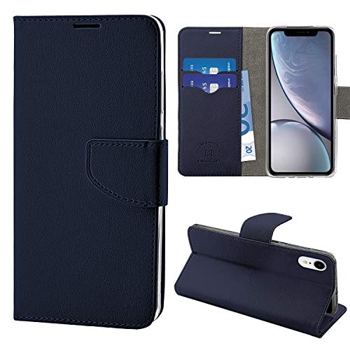 NewTop Cover Compatibile per Apple iPhone XR, HQ Lateral Custodia Libro Flip Magnetica Portafoglio Simil Pelle Stand (Blu)