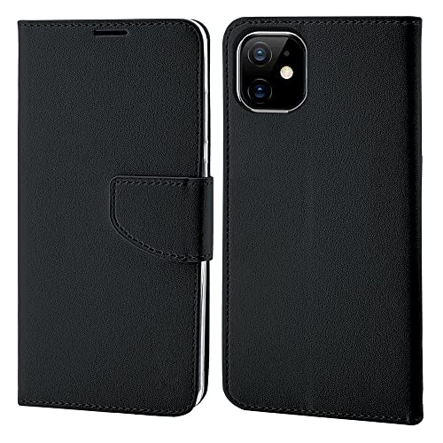 N NEWTOP Cover Compatibile con Apple iPhone 11, HQ Lateral Custodia Libro Flip Chiusura Magnetica Portafoglio Simil Pelle Stand (Nero)