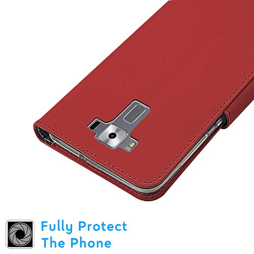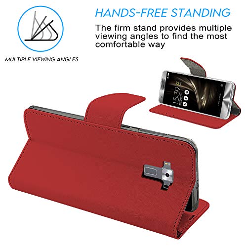N NEWTOP Cover Compatibile per ASUS Zenfone 3 Deluxe ZS570KL 5.7", HQ Lateral Custodia Libro Flip Chiusura Magnetica Portafoglio Simil Pelle Stand (Rosso)