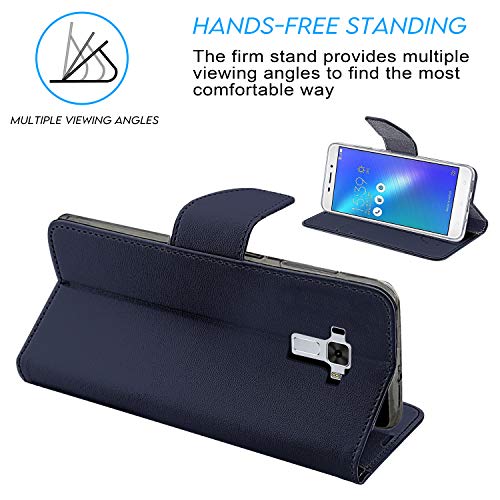 N NEWTOP Cover Compatibile per ASUS Zenfone 3 Laser ZC551KL 5.5", HQ Lateral Custodia Libro Flip Chiusura Magnetica Portafoglio Simil Pelle Stand (Blu)