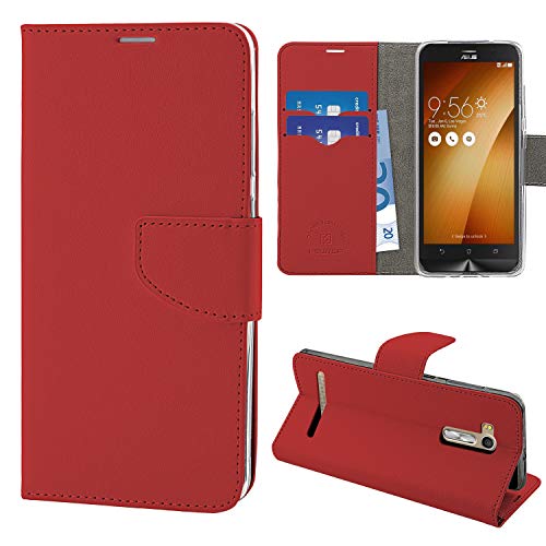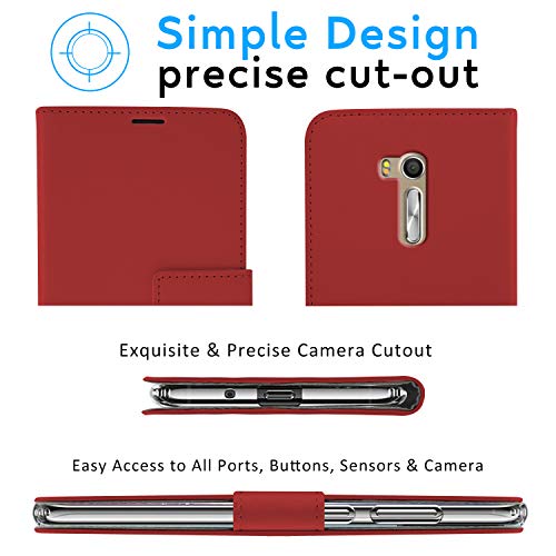 N NEWTOP Cover Compatibile per ASUS Zenfone Go ZB551KL 5.5", HQ Lateral Custodia Libro Flip Chiusura Magnetica Portafoglio Simil Pelle Stand (Rossa)