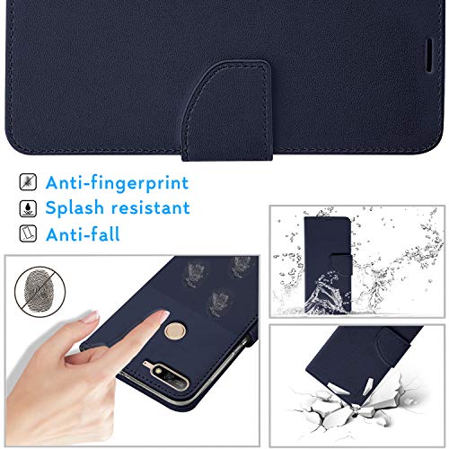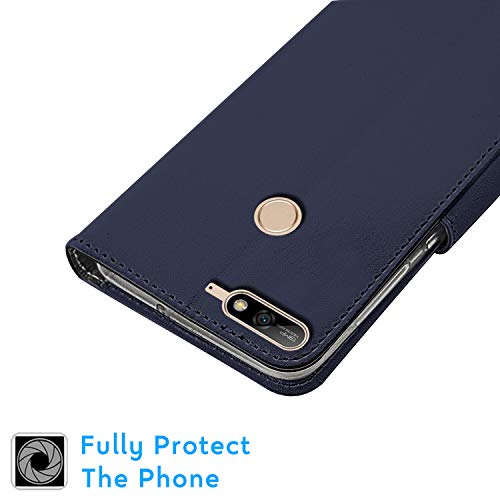 N NEWTOP Cover Compatibile per Huawei Y7 2018/Nova Lite Plus, HQ Lateral Custodia Libro Flip Chiusura Magnetica Portafoglio Simil Pelle Stand (Blu)