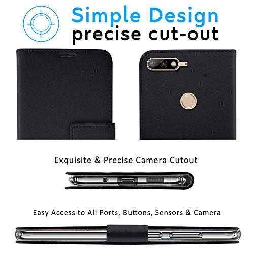 N NEWTOP Cover Compatibile per Huawei Y7 2018/Nova Lite Plus, HQ Lateral Custodia Libro Flip Chiusura Magnetica Portafoglio Simil Pelle Stand (Nero)