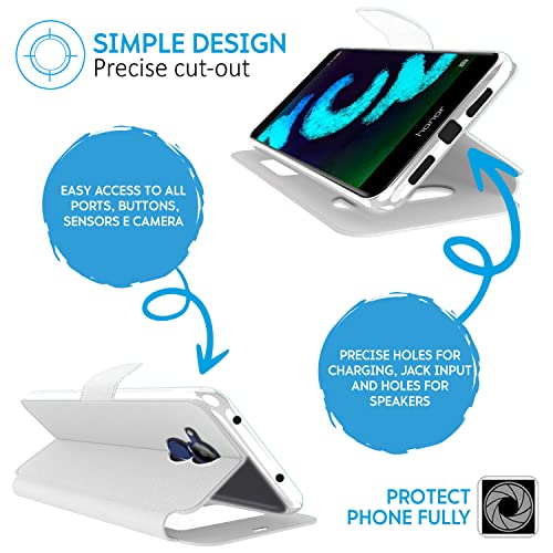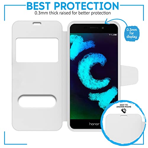 N NEWTOP Cover Compatibile per Huawei Honor 6C / Nova Smart, HQ Windows Notifiche Display Risposta Finestra Custodia Libro Flip Magnetica Simil Pelle Stand Protettiva (Bianco)