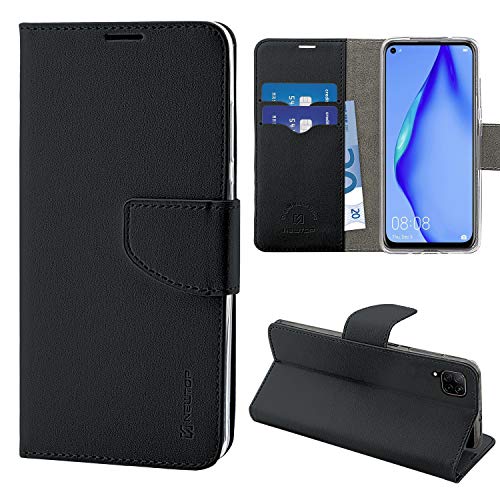 N NEWTOP Cover Compatibile per Huawei P40 Lite, HQ Lateral Custodia Libro Flip Chiusura Magnetica Portafoglio Simil Pelle Stand (Nera)