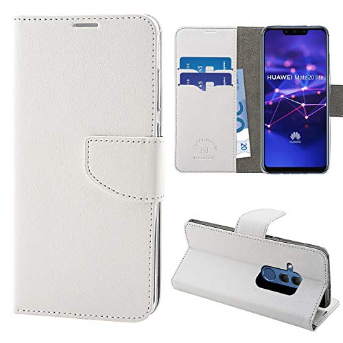 NewTop Cover Compatibile per Huawei Mate 20/Lite/PRO, HQ Lateral Custodia Libro Flip Magnetica Portafoglio Simil Pelle Stand (per Mate 20 Lite, Bianco)